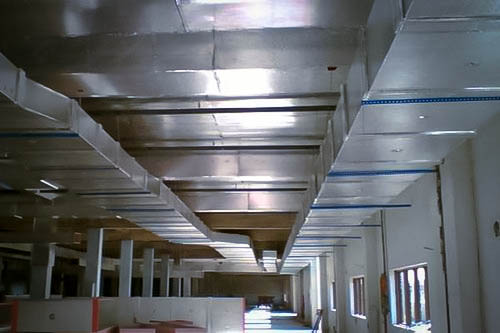 (1)风管应尽量少占建筑空间,并不妨碍生产操作。通常沿着墙、柱、楼板或屋梁敷设,安装在支架或吊架上。